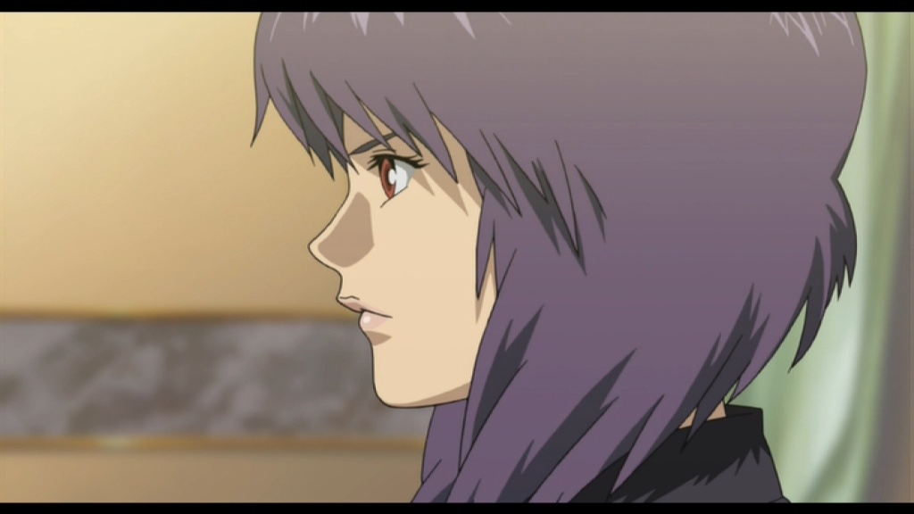 For an example of the comedy in the series, you only have to look at Tachikomatic Days. This is a series of sort animations (about a minute each) tacked onto the end of the episodes. As the name suggests, they concern the activities of the tachikomas, either discussing events or playing with each other. They have a silly, slapstick feel, and remind me a bit of the short extra-cartoony joke segments that sometimes appear in the manga. Ultimately however I'd be better off without them, as between the Tachikomatic Days, the intro credits, and the outro credits, each 25-minute-ish episode is reduced to a mere 21-ish minutes of real content. Also it means I have to scan past the credits and then stop for the Tachikomatic Days segment, rather than skip straight onto the next episode.
